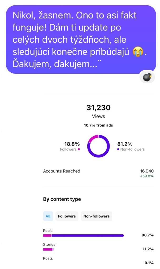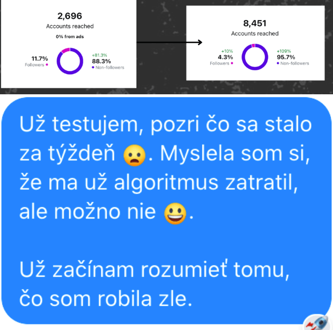 Ale Nikol, ja už som skúšal/a všetky typy rastového obsahu, hashtagy, trendy audiá, carousely, reels a nefungovalo to.