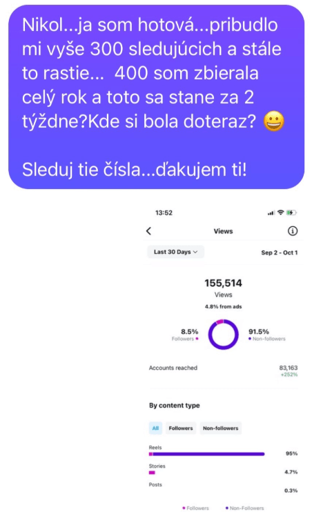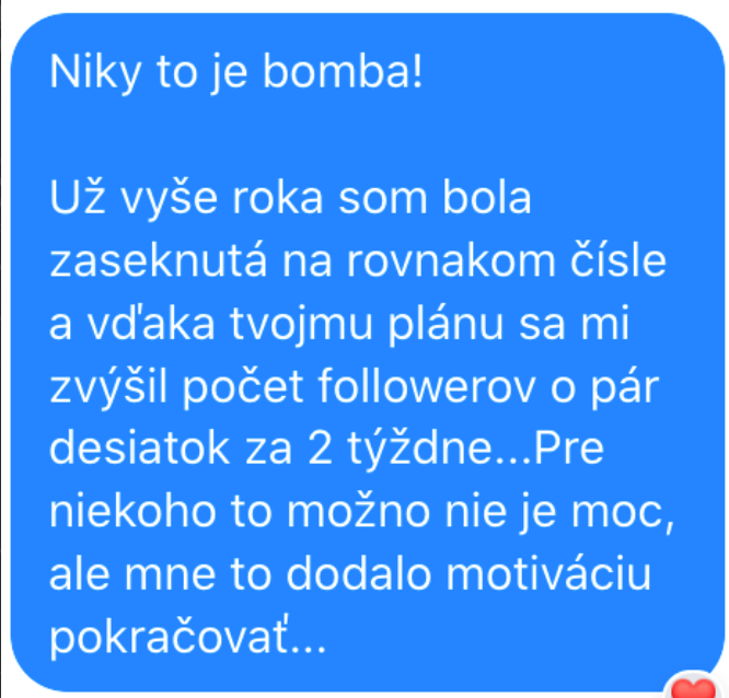 Už vyše roka som bola zaseknutá na rovnakom čísle a vďaka tvojmu plánu sa mi zvýšil počet followerov o pár desiatok.